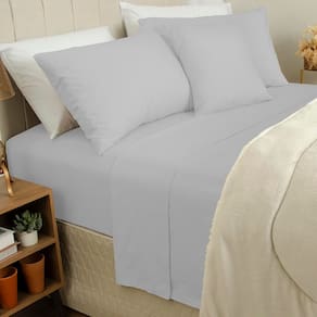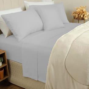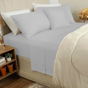 Jogo de Cama Duplo Casal 4 Peças Percal 180 Fios Cinza (Prata) Sonhare Prata - Sultan O Jogo de Cama confeccionado em algodão e poliéster e com sua composição em 180 fios, traz conforto, aconchego e sensação de maciez proporcionando noites de sono mais tranquilas e confortáveis. Sua cor deixa seu ambiente mais alegre. Beleza e mais tempo de conservação do produto com caimento perfeito. Sua confecção usa tecnologia Americana "No Iron". Essa tecnologia torna o tecido mais resistentes a rugas, não precisando passar. Contém 4 Peças: 01 Lençol de cima 2,50m x 2,20m (CxL) 01 Lençol de baixo com elástico para colchão de 1,88 m x 1,38m x 30cm de altura (CxLxA) 02 Fronhas 70cm x 50cm (CxL)) Composição: Tecido: 65% Algodão 35% Poliéster Percal 180 fios Maciez do algodão Fácil de passar Tecnologia Americana Cor: Cinza Claro (Prata) Fabricante: Sultan Linha: Sonhare Prata Modelo: Percal Instruções de lavagem: Lavar à temperatura máxima de 30°C Não usar alvejante à base de cloro Secagem em tambor rotativo, temperatura mínima Passar à temperatura máxima de 110°C Não limpar à seco Limpeza a úmido profissional em processo normal - Não acompanha demais itens de decoração da foto. Devido à diferença de luz e tela do seu aparelho, a cor do item pode ser ligeiramente diferente das imagens. Santo Magazine
