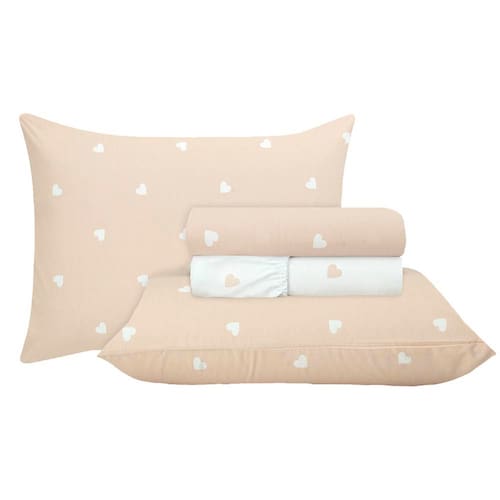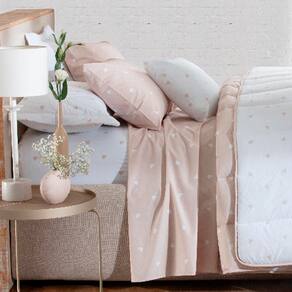 Jogo de Cama Duplo Casal 4 Peças Percal 180 Fios Coração Bege Sonhare Prata - Sultan