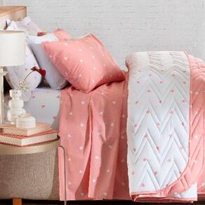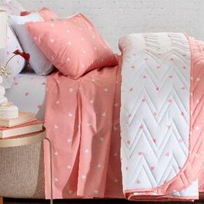 Jogo de Cama Duplo Casal 4 Peças Percal 180 Fios Coração Rose Sonhare Prata - Sultan