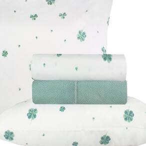 Jogo de Cama Duplo Casal 4 Peças Percal 180 Fios Trevo da Sorte Sonhare Prata - Sultan