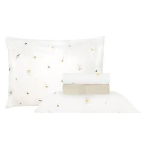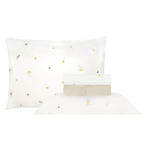 Jogo de Cama Duplo Queen 4 Peças Percal 180 Fios Abelha Sonhare Prata - Branco