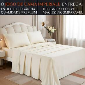 Eleve a experiência do seu quarto com o Jogo de Cama Imperiale King 300 Fios, feito com 100% algodão e toque super macio. Um enxoval de alto padrão que une conforto, qualidade e sofisticação, deixando suas noites ainda mais agradáveis.
