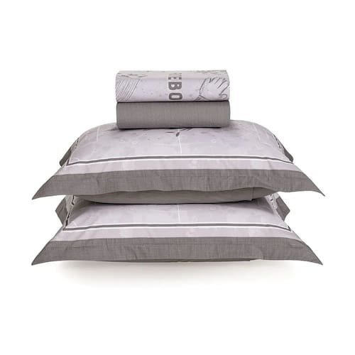 Embalagem: 1 lençol, 1 lençol com elástico e 2 fronhas