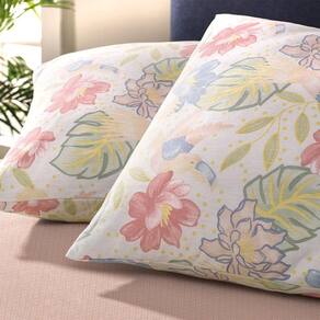A estampa Borogodó transborda alegria com seus florais exuberantes, folhagens tropicais e pinceladas artísticas que remetem a pinturas feitas à mão. Cores como coral, lilás, verde e azul se misturam com leveza, transmitindo energia e delicadeza.