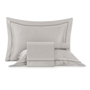 O conjunto é composto por 2 Fronhas (50cm x 70cm) com acabamento em festonê triplo nas três abas de 9cm, Lençol superior com dobra feita e aplicação de festonê triplo em U e Lençol com elástico, garantindo um ajuste perfeito ao colchão. Disponível em duas cores elegantes: branco, com sobreposição de tons, e cinza, com faixas em degradê.
