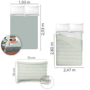 Jogo de cama king size 300 fios nova américa - caio 7717-1 Jogo de cama king size de algodão completo, formado por 4 peças: 1 lençol, medindo 2,47 m x 2,80 m, com dobra feita para um visual mais elegante. 1 lençol com elástico, com dimensões de 1,93 m x 2,00 m x 40 cm, para um ajuste perfeito em seu colchão. 2 fronhas de 50 cm x 70 cm, com abas, proporcionando um toque sofisticado.