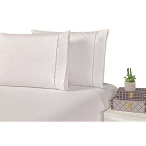 01 Lençol de baixo com elástico em toda a volta 1,88m comp. x 1,38m larg. x 30cm alt.