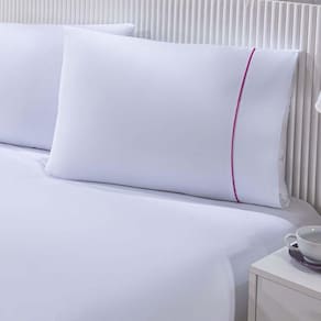 Jogo De Cama Lençol 100% Algodão Percal 150 Fios Queen Gran Moratta 3 Peças - Branco E Rosa - Única