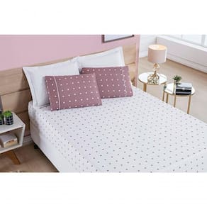 Jogo De Cama Lençol 200 Fios Petit Poá Casal Padrão 03 Peças - Rose O Jogo de Cama Petit Poá possui tecido micro percal 200 fios com estampa clássica com bolinhas, é fácil de lavar e seca rápido! Produto composto por: 01 Lençol de baixo c/ elástico p/ colchão de 1,88m x 1,38m x 30cm de altura02 Fronhas 70cm x 50cm Composição: Tecido: 100% Poliéster Ean: 7908125129237