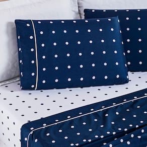 Jogo De Cama Lençol 200 Fios Petit Poá King 04 Peças - Marinho