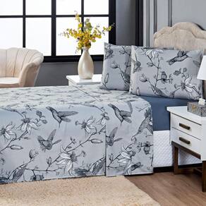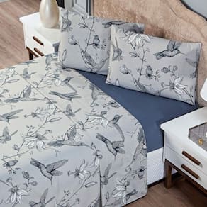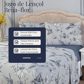 Mergulhe na suavidade e na beleza com o nosso Jogo de Lençol Beija-flor, um convite para uma experiência de sono luxuosa e elegante. Este conjunto é um verdadeiro mimo para o seu refúgio de descanso. Fabricado em tecido percal de 300 fios acetinado, cada fibra deste jogo de cama é meticulosamente trabalhada para oferecer um toque de maciez incomparável. Este tecido de alta qualidade garante não apenas conforto, mas também durabilidade, proporcionando noites de sono aconchegantes por muito tempo. O destaque deste conjunto é o seu encantador padrão de beija-flor em tons de azul e cinza, que adiciona um toque de encanto e delicadeza ao seu quarto. Esta estampa vibrante é uma verdadeira obra de arte, transformando seu espaço de descanso em um refúgio de tranquilidade e beleza. Além disso, a qualidade do tecido percal proporciona uma sensação de frescor durante todas as estações do ano, garantindo que você durma confortavelmente, esteja fazendo calor ou frio lá fora. O conjunto inclui um lençol de elástico todo liso em azul petróleo, um lençol de cima todo estampado e duas fronhas coordenadas, completando o visual harmonioso do seu ambiente. Prepare-se para noites de sono revigorantes e sonhos doces com este jogo de cama. Desperte todos os dias renovado e revigorado, pronto para enfrentar o mundo com uma nova energia, graças ao conforto e elegância deste conjunto excepcional. Confira!