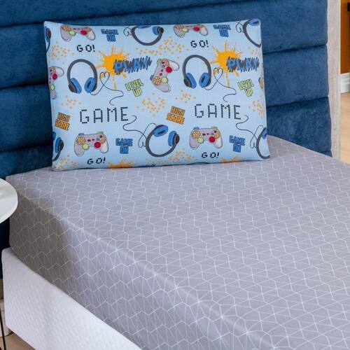 Jogo De Cama Lençol Bouti Infantil Kids Solteiro 02 Peças - Game - Azul