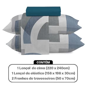 Este Kit Contém: 01 Lençol de Cima (220x240cm) 01 Lençol de Elástico (158x198x30cm) 02 Fronhas De Travesseiro (50x70cm)