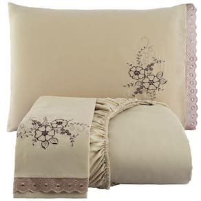Jogo De Cama Lençol Casal Bordado Advance 3 Peças - Avelã