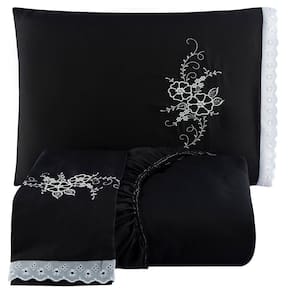 Jogo De Cama Lençol Casal Bordado Advance 3 Peças - Preto