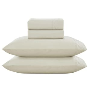 Jogo De Cama Lençol Casal Romantico Percal 300 Fios 4 Peças Bege 100% Poliéster