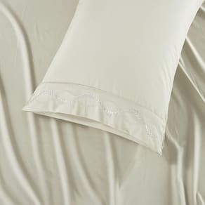 O delicado bordado, meticulosamente feito à mão, traz um charme único e sofisticado, ideal para marcar o início de uma nova etapa com elegância e beleza.A combinação perfeita entre a suavidade do algodão e o requinte dos detalhes bordados cria uma peça que não apenas embeleza a cama, mas também proporciona uma experiência de aconchego e descanso.
