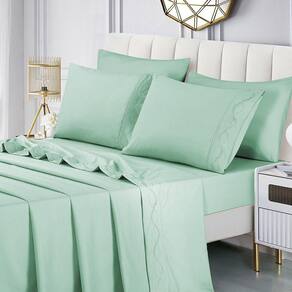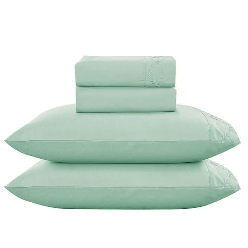 Jogo De Cama Lençol Casal Romantico Percal 300 Fios 4 Peças Verde 100% Poliéster