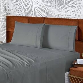 Jogo De Cama Lençol King Conforto Percal 300 Fios 4 Peças - Cinza