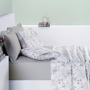 Jogo De Cama Lençol Maggy Casal 4 Peças Percale 200 Fios Estampado Portea Floral Cinza 80% Algodão - 20% Poliéster