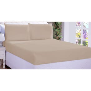 Jogo De Cama Lençol Ponto Palito Micropercal King 03 Peças Bege