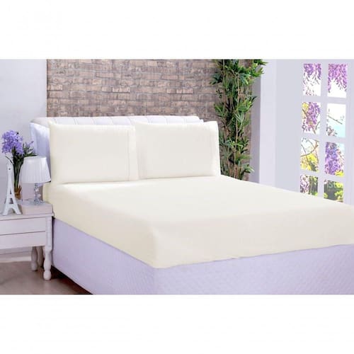 Jogo De Cama Lençol Ponto Palito Micropercal Queen 03 Peças Palha