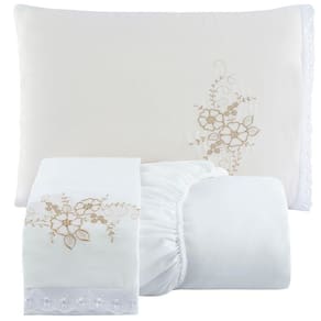 Jogo De Cama Lençol Queen Bordado Advance 3 Peças Branco 100% Poliéster