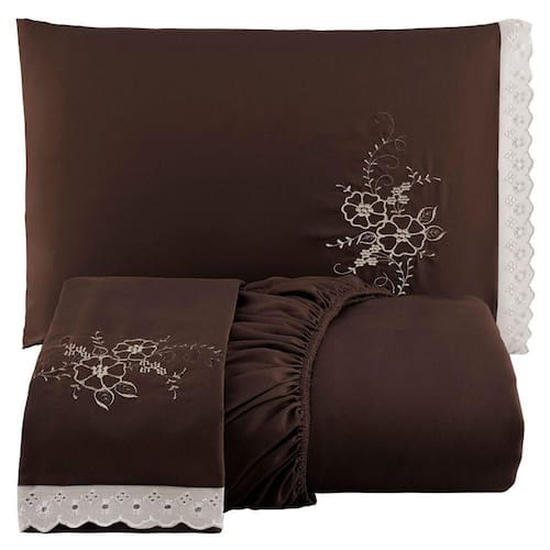 Jogo De Cama Lençol Queen Bordado Advance 3 Peças Tabaco 100% Poliéster - Marrom