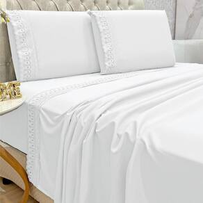 Jogo de Cama Lençol Queen D Mais 4 Peças - Branco - 100% Poliéster