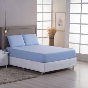 Jogo De Cama Lençol Sereno King Em Malha Algodão Azul Claro 100% Algodão