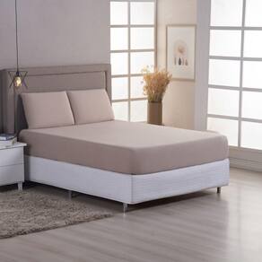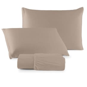 Jogo De Cama Lençol Sereno King Em Malha Algodão Cáqui 100% Algodão