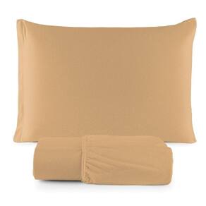 Jogo De Cama Lençol Sereno Solteiro Em Malha Algodão 2 Peças Mostarda 100% Algodão