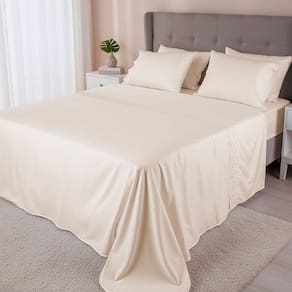 Jogo de Cama Lençol Solteiro Micro Percal 300 fios com 3 Peças Premium- BF Colchões - Bege
