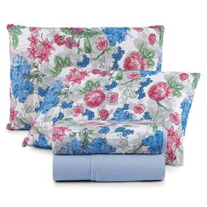 Jogo De Cama Lençol Sonho Bom Queen Em Malha 4 Peças Azul 100% Algodão
