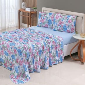 Jogo De Cama Lençol Sonho Bom Queen Em Malha 4 Peças - Azul - 100% Algodão