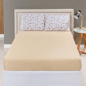 Jogo De Cama Lençol Sonho Bom Queen Em Malha Algodão 3 Peças Mostarda 100% Algodão