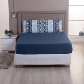 Jogo De Cama Lençol Sonho Bom Queen Em Malha Algodão Marinho 100% Algodão - Azul Marinho