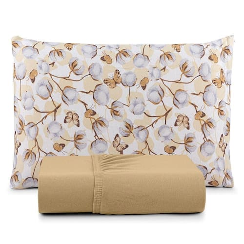 Jogo De Cama Lençol Sonho Bom Solteiro Em Malha Algodão 2 Peças - Caqui - 100% Algodão