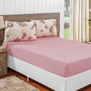 Jogo De Cama Malha Casal Quality 03 Peças Rosê - Única