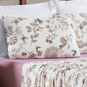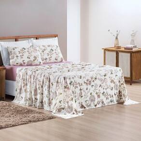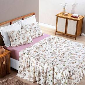 Contém um lençol de baixo com elástico, um lençol de cima e duas fronhas.