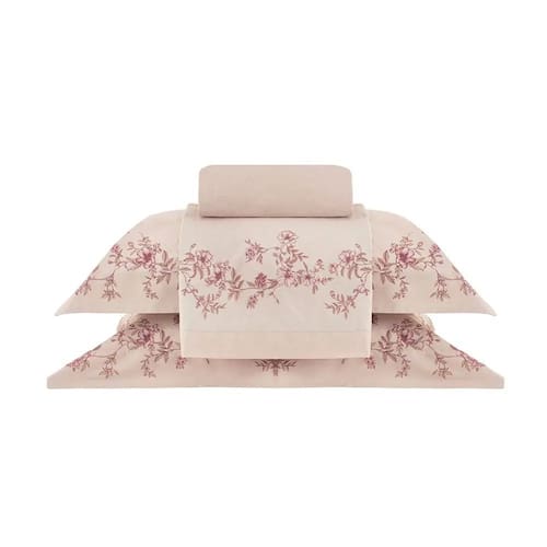 Contém: 1 lençol plano, 1 lençol com elástico e 2 fronhas