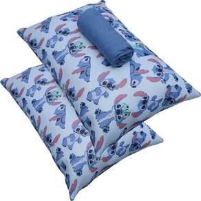 Jogo de Cama Portallar Casal Malha 100% Algodão Disney Mickey Stitch E Xepa 3 Peças Azul