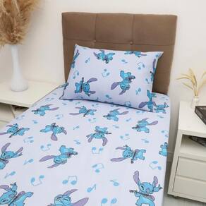 Conteúdo e Medidas: Jogo de Cama Malha Mista Estampado - Stitch Song - 02 Peças 01 Lençol Malha Misto Estampado Com Elástico (88cm x 1,88m x 30cm) 01 Fronha Malha Mista Estampada (48cm x 68cm) (Para travesseiro até 50cm x 70cm)