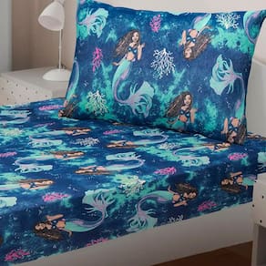 Conteúdo e Medidas: Jogo de Cama Malha Mista Estampado - Ariel Mermaid - 02 Peças 01 Lençol Malha Misto Estampado Com Elástico (88cm x 1,88m x 30cm) 01 Fronha Malha Mista Estampada (48cm x 68cm) (Para travesseiro até 50cm x 70cm)
