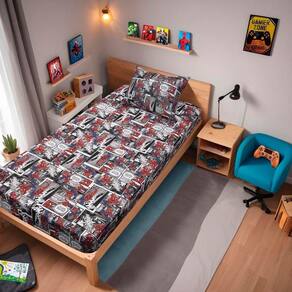 Conteúdo e Medidas: Jogo de Cama Malha Mista Estampado - Marvel Spider Cartoon - 02 Peças 01 Lençol Malha Misto Estampado Com Elástico (88cm x 1,88m x 30cm) 01 Fronha Malha Mista Estampada (48cm x 68cm) (Para travesseiro até 50cm x 70cm)