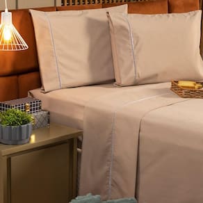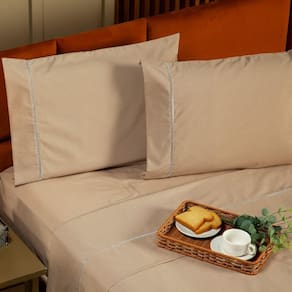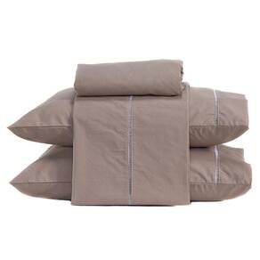 Jogo De Cama Ponto Palito Liso Queen 04 Peças - Percal 200 Fios Cor Caqui