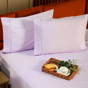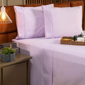 Jogo De Cama Ponto Palito Liso Queen 04 Peças - Percal 200 Fios Cor Lilás