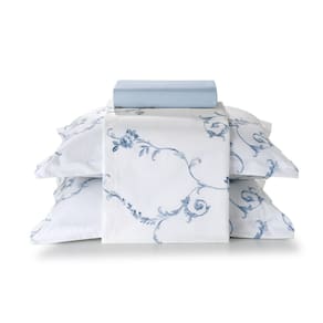 Jogo de Cama Queen 100% Algodao Percal 180 Fios Uni Dohler Kit 4 Pecas - Branco | Azul