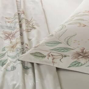 Composto por um sobre lençol de 2,40m x 2,60m com dobra feita, lençol de elástico 1,60m x 2,00m x 40cm com estampa rotativa e duas fronhas 50cm x 70cm com 3 abas de 5 cm, suas peças são confeccionadas em 300 fios 100% algodão, garantindo maciez extrema, durabilidade e um toque suave à pele. Sua estamparia digital dimensionada traz riqueza de detalhes e cores vibrantes, criando um ambiente sofisticado e acolhedor.