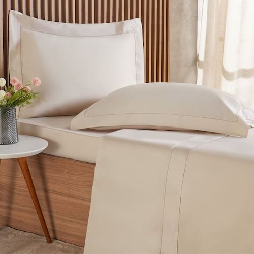 Jogo de Cama Queen 4 Pçs Ricamo 300 Fios 100% Algodão 160x200x40cm Biscuit -
